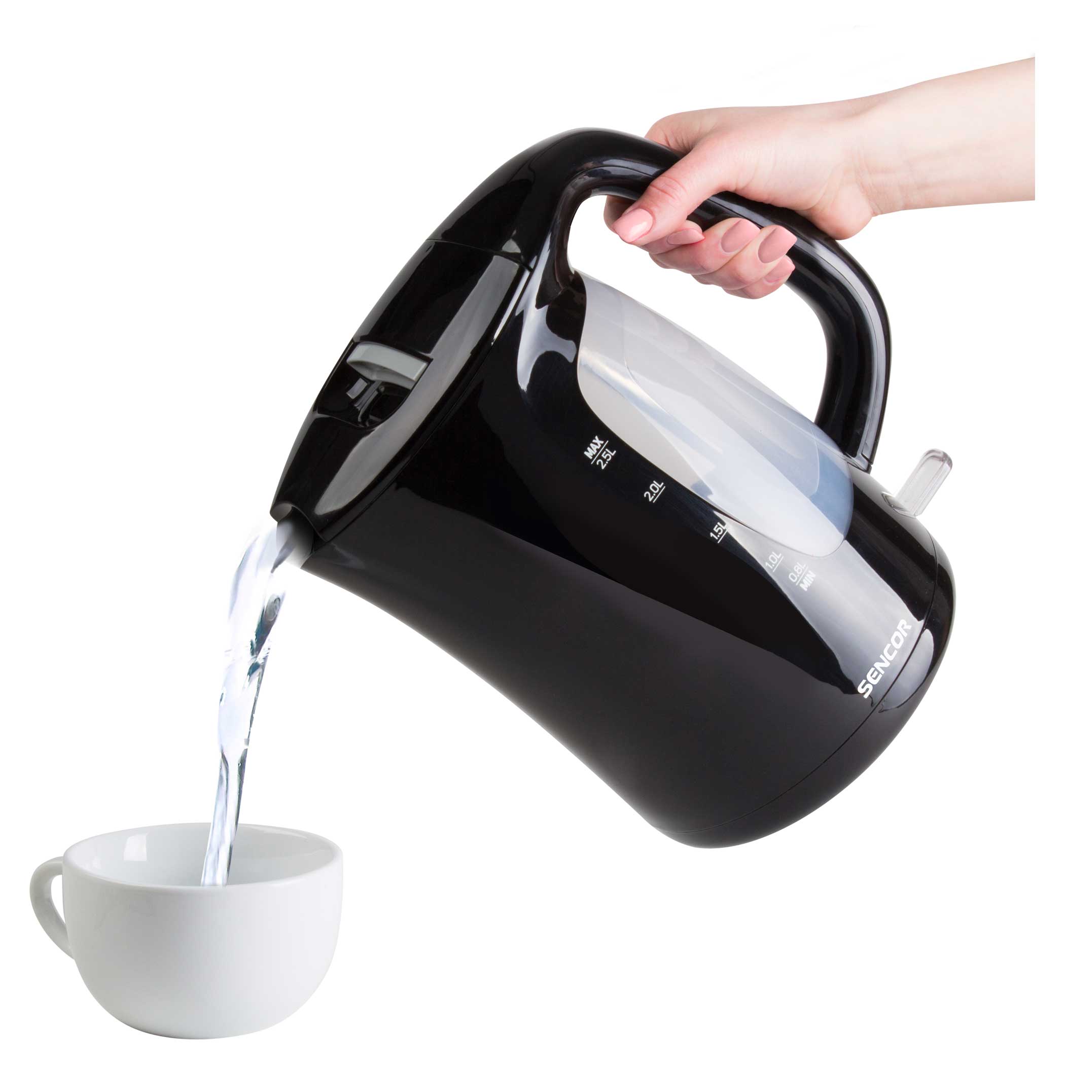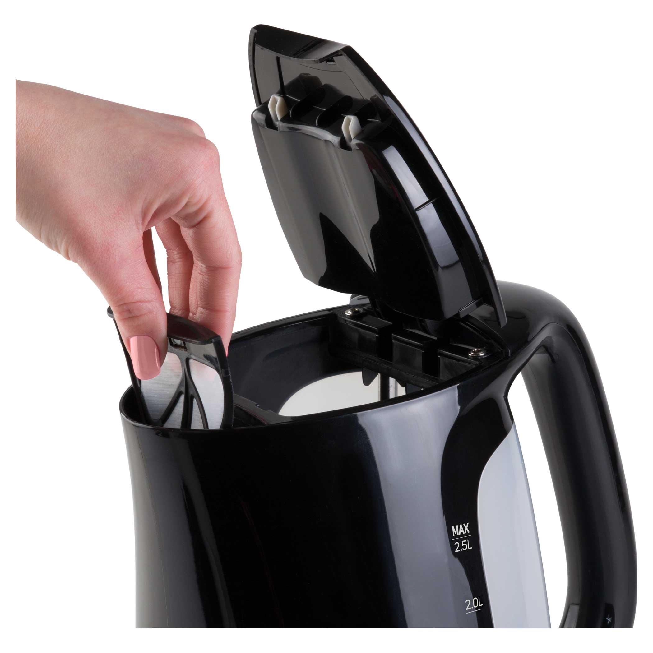 Double-sided water level mark, Volume 2.5 l, Power input 1 850 – 2 200 W.