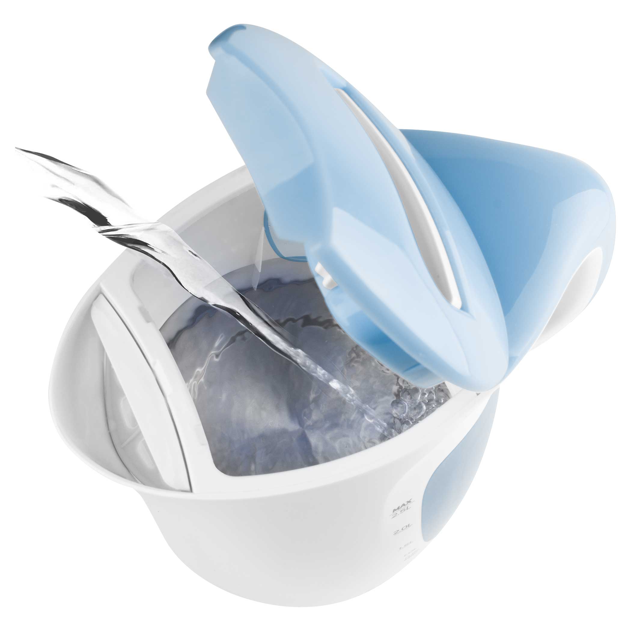 Double-sided water level mark, Volume 2.5 l, Power input 1 850 – 2 200 W.