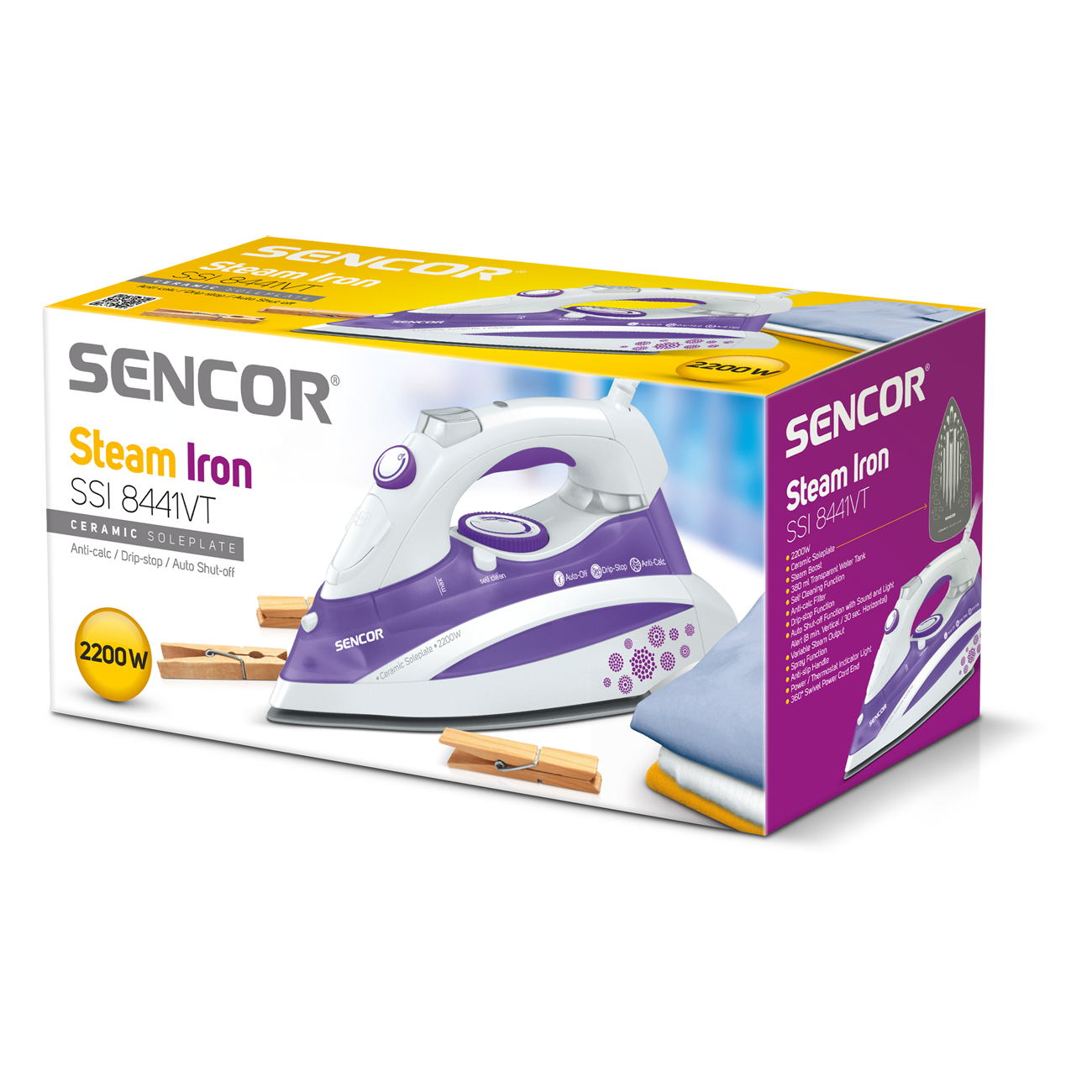 Steam Iron with ceramic ironing surface, power input 2200W