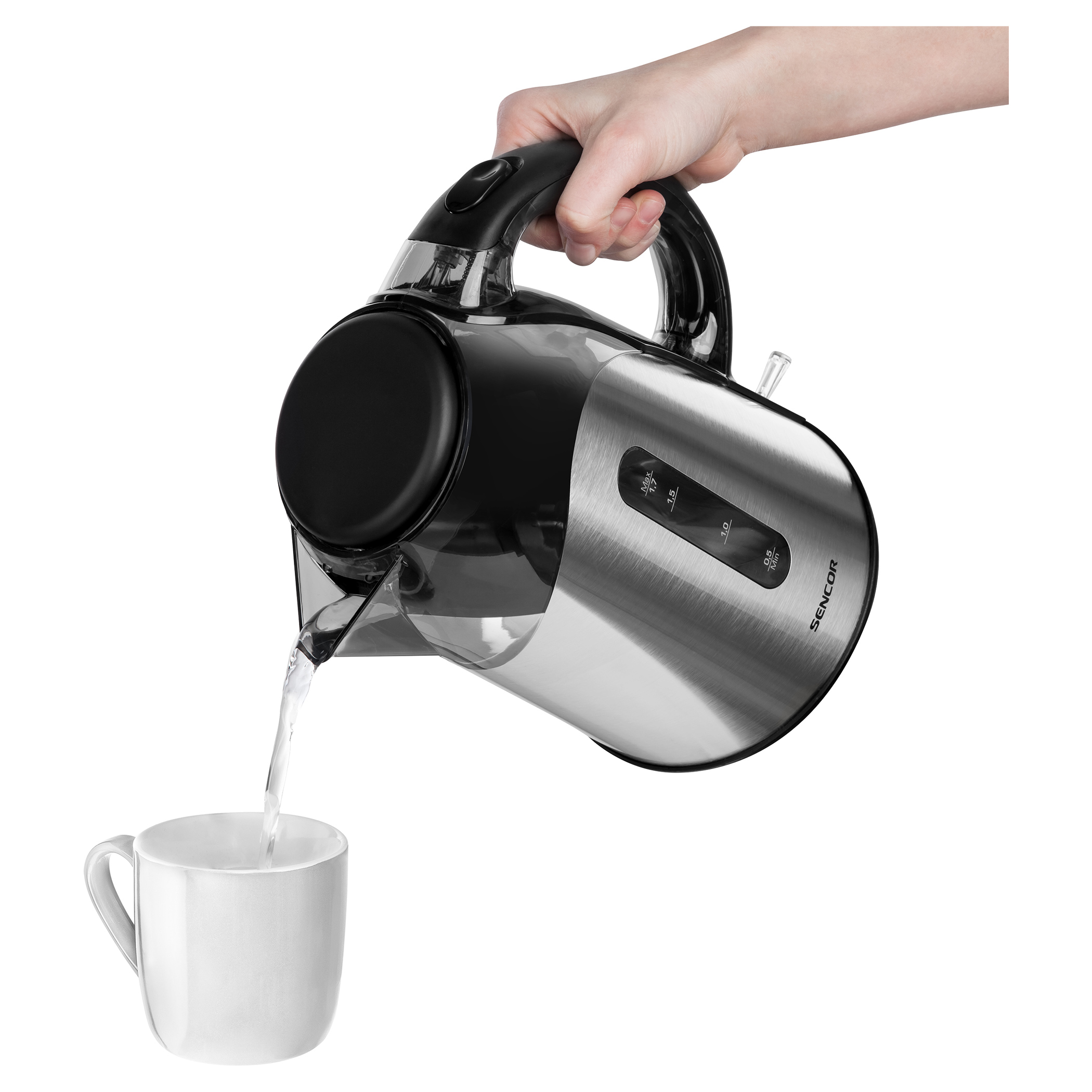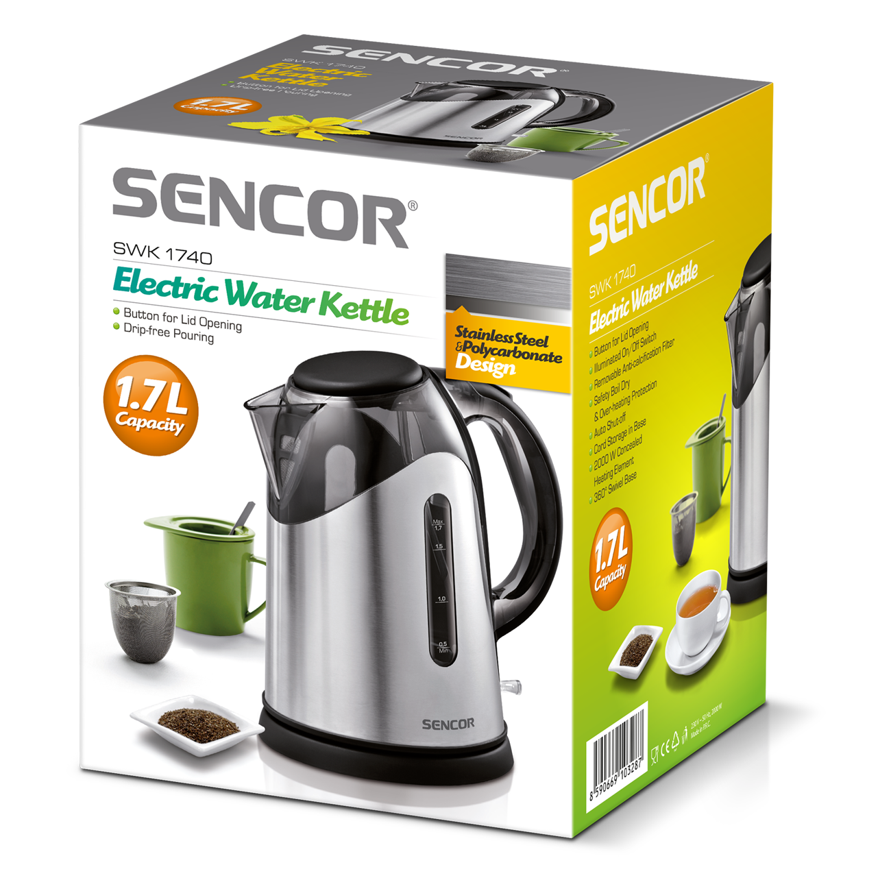 Double-sided water level mark, Volume 2.5 l, Power input 1 850 – 2 200 W.