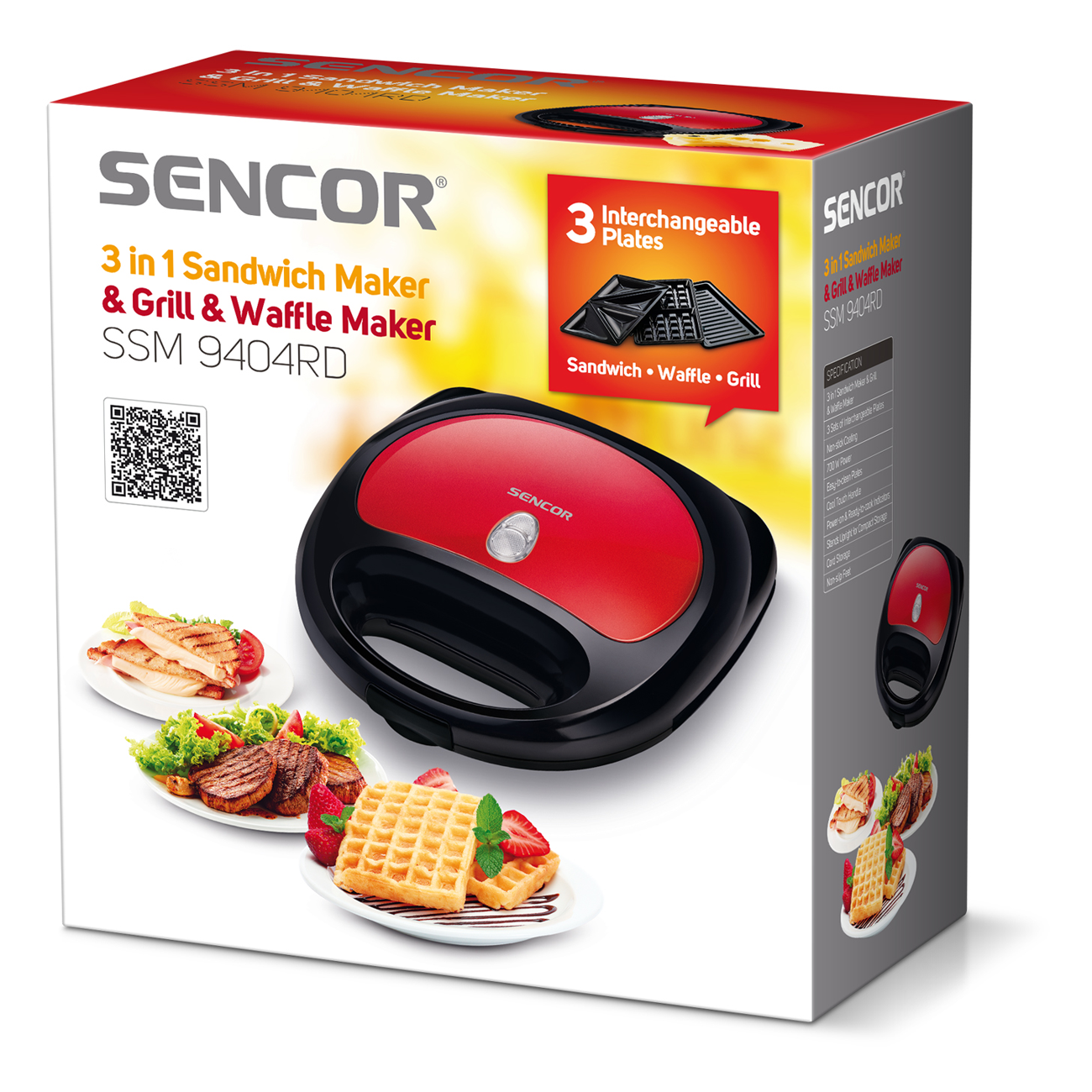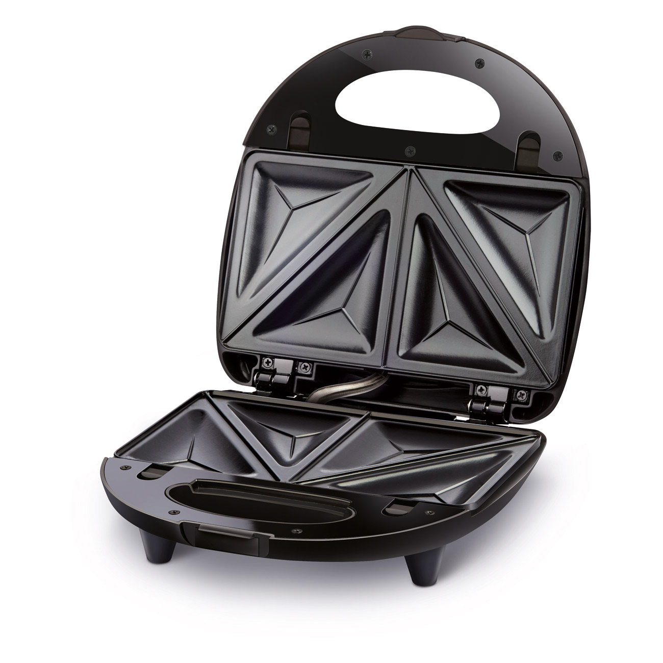 Prepares 4 triangular sandwiches, grilled meat or waffles